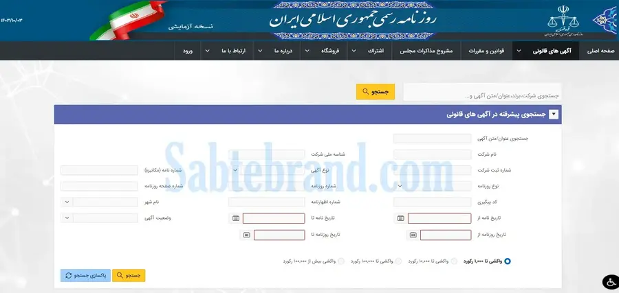 این سامانه برای جستجو و مشاهده آگهی های روزنامه رسمی کشور ایجاد شده است. - انتخاب بخش استعلام: