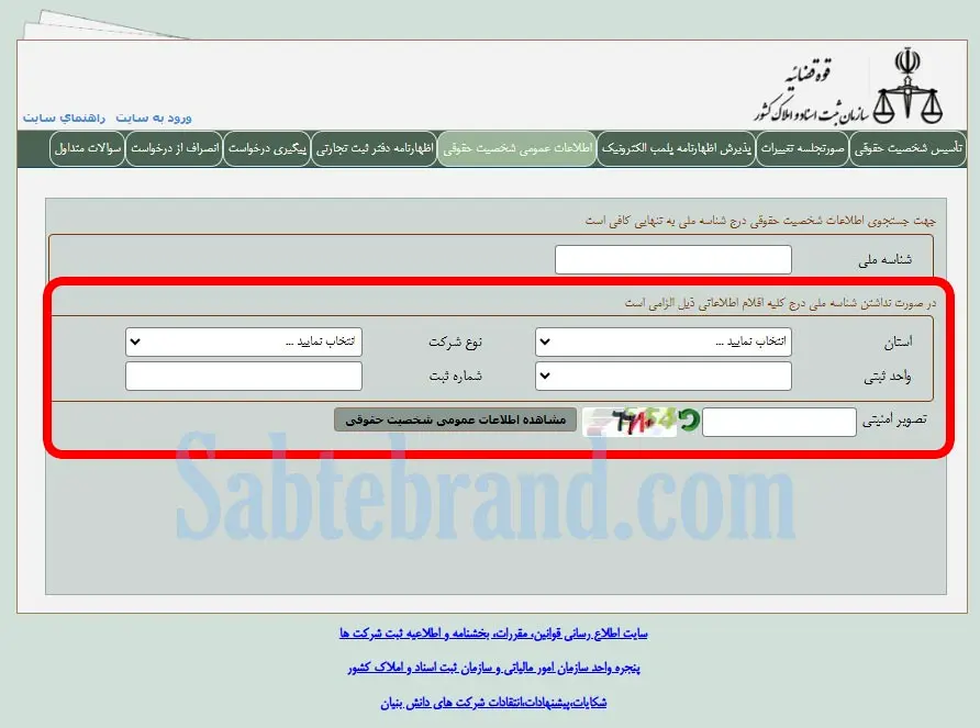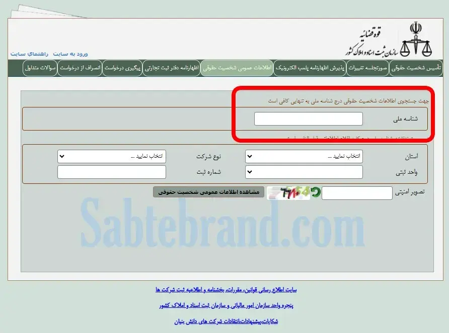 - یکی از روش های جستجو مانند نام شرکت، شماره ثبت، یا کد ملی را وارد کنید.